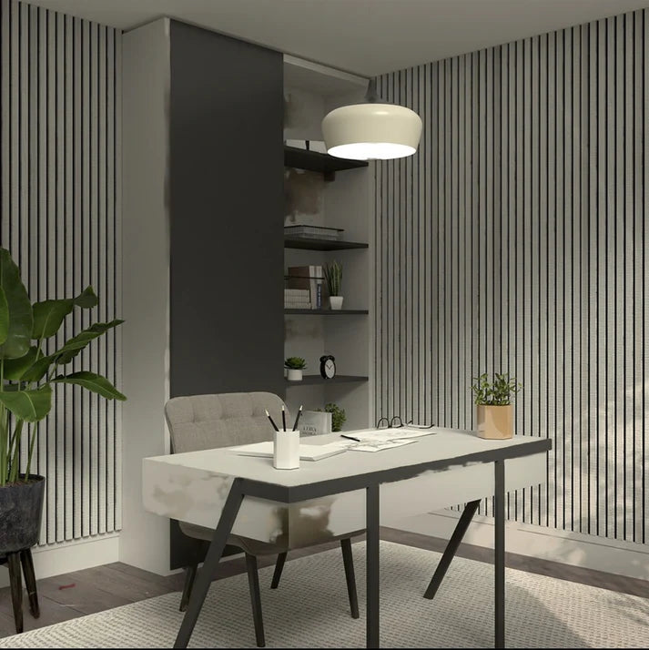 Bring warmth, style, and tranquility to your space with the Mellow Wood Slat Panell. This premium acoustic solution combines the natural beauty of wood with advanced sound-absorbing technology to create a harmonious environment. Measuring 610mm x 2440mm, each panel features a PET acoustic backer paired with MDF wood slats topped with a sleek wood veneer, blending performance and aesthetics seamlessly.